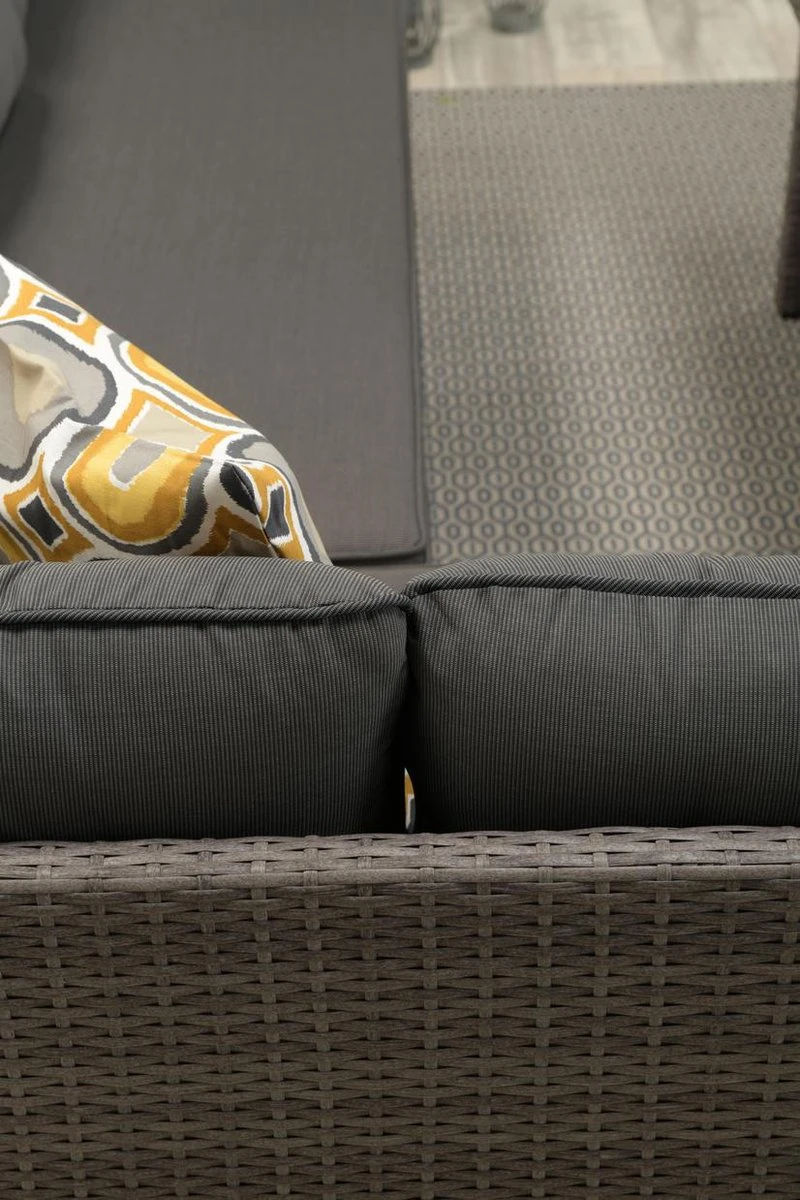 Gemaakt van een stevig aluminium binnenframe met daar om heen gevlochten wicker kunststof vlechtwerkdraad. Hierdoor roest de set niet, heb je vrijwel geen onderhoud en is de set goed bestand tegen de verschillende weersomstandigheden. De kussenhoezen van de zitkussens zijn afritsbaar, dus schoonmaken is zeer makkelijk. Water of andere vloeistoffen kunnen na het knoeien met een doek van de kussens afgeveegd worden.