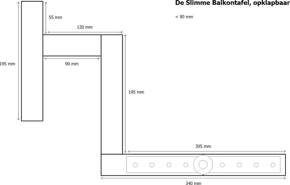 GoudmetHout Inklapbare Balkontafel – Balkonbar – Balkon Tafel – 99 Cm – Hout – Transparant Wash – Reling Smal