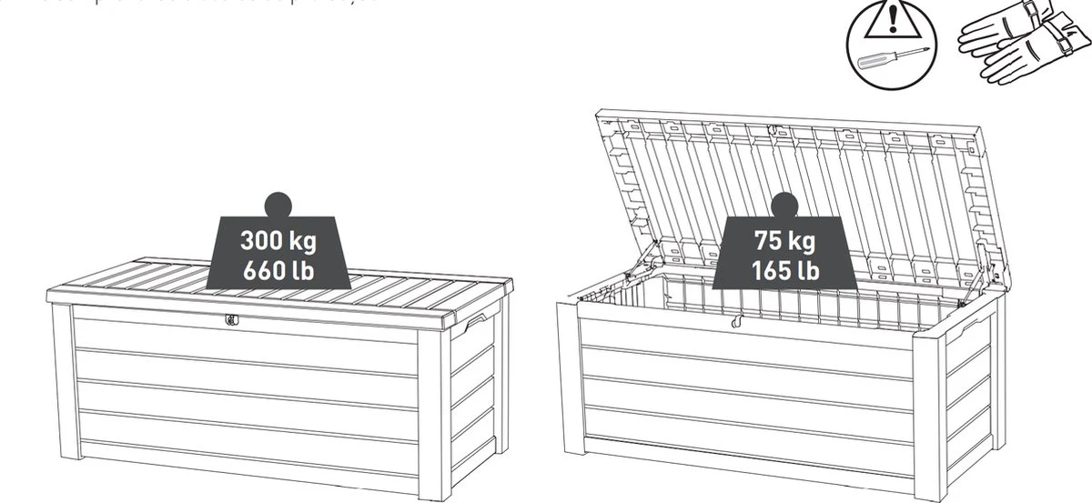 • Geschikt voor twee volwassenen om op te zitten (draagkracht deksel 350 kg)