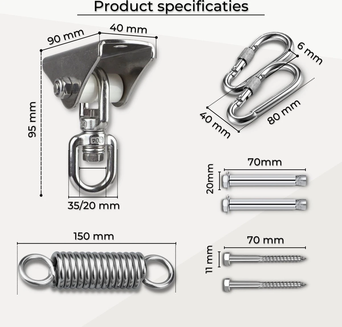 LFSY – Ophangsysteem – Universele Plafondhaak – Hangstoelen Binnen & Buiten – Ophanghaak – Bokszakken – Verandastoel – Zware Veer – RVS – 450kg – M8