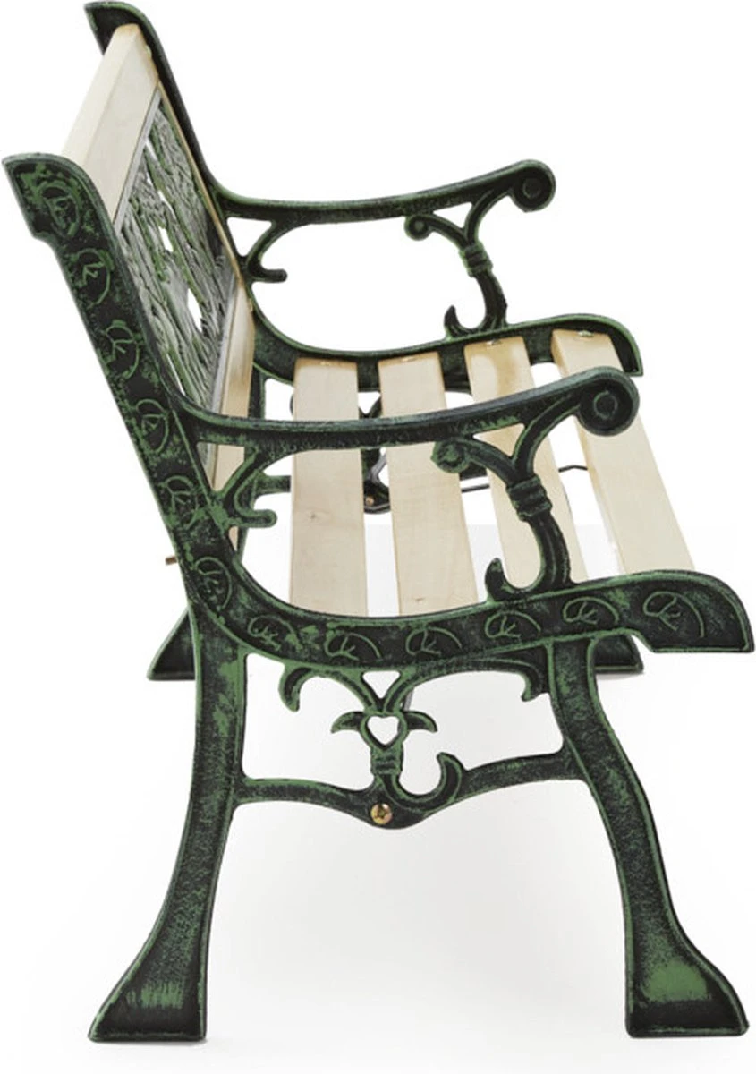 LIFA GARDEN Tuinbank Voor 2 Kinderen | Kinderbank Van Onbewerkt Hout En Ijzer | Nostalgische Tuinbank Met Jungle Afbeelding In De Rugleuning | Tuinbank Om Te Beitsen | 82 X 39 X 50 Cm