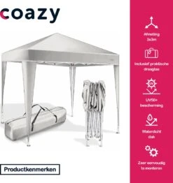 Coazy Waterdichte Partytent 3×3 Meter Opvouwbaar – Paviljoen – Easy Up – Pop-up Tent Met Haringen, Touw En Anti Slip Poten – Waterdicht – Partytenten Weerbestendig