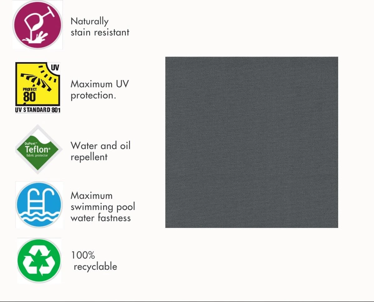 Kussen is water- & Vuilafstotend in de kleur antraciet.