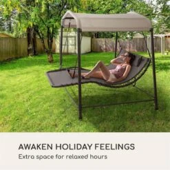 Blumfeldt Palermo Schommelbank – Hollywoodschommel 130 X 207 Cm – Ligbed Met Dak – Schommelstoel Voor 2 Personen – Tuinbank Inclusief Nekkussens – Stalen Frame En Polyester Dak – Grijs