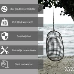 XXL 2 Persoons Hangstoel 185×130 – Zit Hangmat Met Spreidstok Tot 150 Kg – Binnen En Buiten