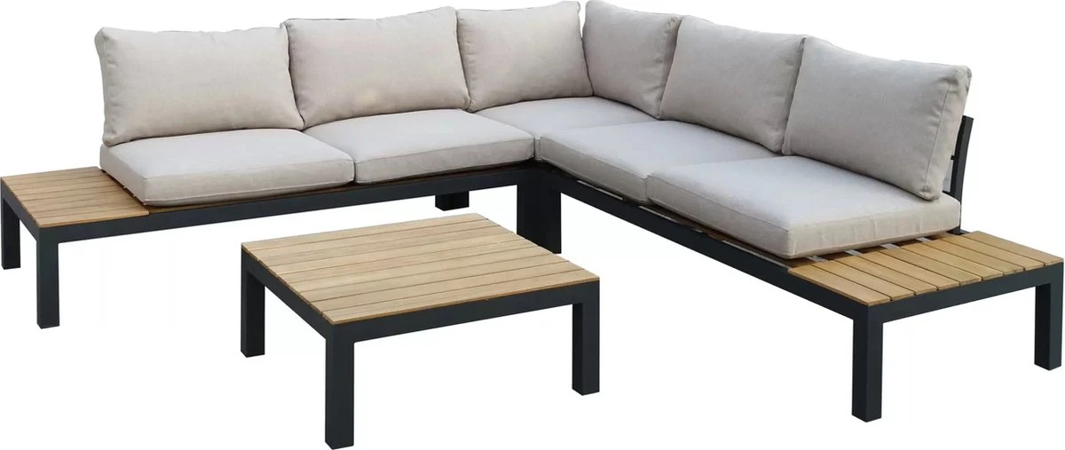 Deze loungebank wordt geleverd met een tafel waar je leuke tuinaccessoires of hapjes en drankjes op kunt plaatsen. Dankzij het tafelblad dat van teakhout is gemaakt kan je gemakkelijk verschillende soorten tuinmeubels/accessoires combineren met deze tuinmeubelset. Denk hierbij bijvoorbeeld aan een gezellige terrasverwarmer of een van de vele windlichten in ons assortiment.